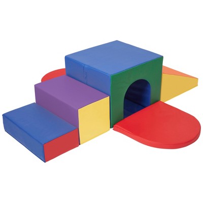 Little climbers will develop important gross motor skills as they move and play on ECR4Kids SoftZone Junior Pedestal. Scaled down in size, this mini pedestal is great for daycares, apartment homes, and smaller playrooms. With endless possibilities for play, this foam piece promotes and strengthens early muscle movement, enhances physical coordination and balance, and helps overall body control. This soft climbing structure keeps babies active and engaged while encouraging little hands and feet to climb and explore the foam climbing square. Little ones can use the pedestal to pull up, climb on top, and safely back down. Place against a wall for a soft spot to read a story or in a corner for additional support. Use as a connector for other foam pieces to build a fun obstacle course. As young children explore, they gain self-confidence while improving hand-eye coordination, agility, and core strength. The shape is lightweight and easy to carry allowing parents to quickly set up. The foam core is encased in water-resistant polyurethane vegan leather with a durable woven backing, complete with a non-slip base for stability. Keep playtime open-ended by pairing with ECR4Kids SoftZone Junior Adventure Summit Collection, sold separately.