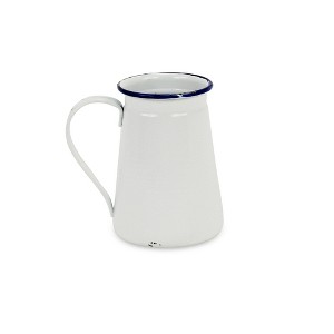 Enhance your decor with the charming 6-inch white and blue metal jug vase. This hand-painted piece features purposeful coat/paint distressing, adding a touch of vintage appeal to any room. The metal construction ensures durability, while the cottage style brings a cozy atmosphere to your space. The white and blue color scheme complements various color palettes, making it a versatile accent for your home. Whether displayed on its own or filled with your favorite flowers, this jug vase is sure to make a stylish statement in your living room, bedroom, or dining area. Add a rustic yet elegant touch to your interior with this lovely vase. 6.25-inch h x 4.5-inch w x 4.5-inch d