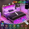 AMERLIFE Queen Bookcase Storage Bed Frame with LED Lights & Charging Station, White