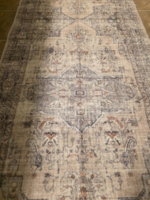 2'x6' Washable Hallway Runner Rug, Vintage Medallion Distressed, Foldable Low Pile, Ideal for Bedroom, Living Room, Laundry Room, Brown