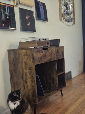 Costway Record Player Stand with Power Outlet, Drawer, Removable Divider Industrial Turntable Display Stand