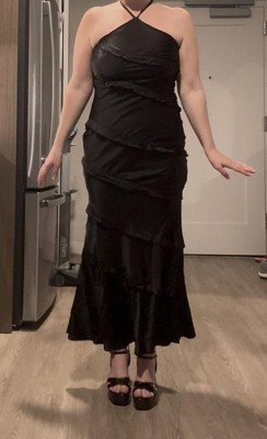 [This review was collected as part of a promotion.] Loved this dress—super classy with fun ruffles! I have a larger bust and ended up choosing a different style since the halter straps didn’t offer quite enough support, but it was a close call.