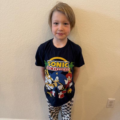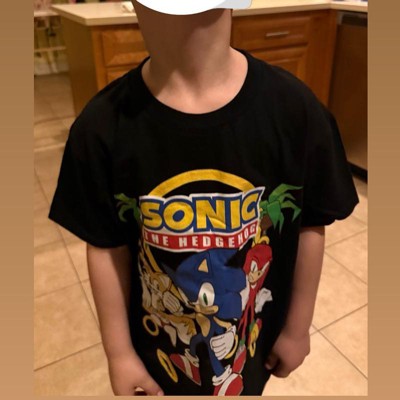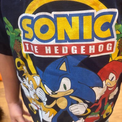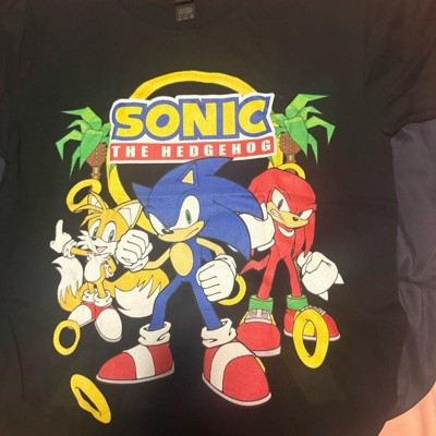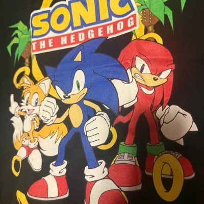 Speed into style with this classic boys' black Sonic the Hedgehog t-shirt that’s officially licensed and ready for action! Featuring Sonic, Knuckles, and Tails striking bold poses in front of tropical palm trees and the iconic Sonic the Hedgehog logo, this tee brings major retro game vibes to any kid's wardrobe. Made for comfort and built for adventure, it’s the perfect choice for playground races, weekend quests, or just chillin’ like a true blue blur.
