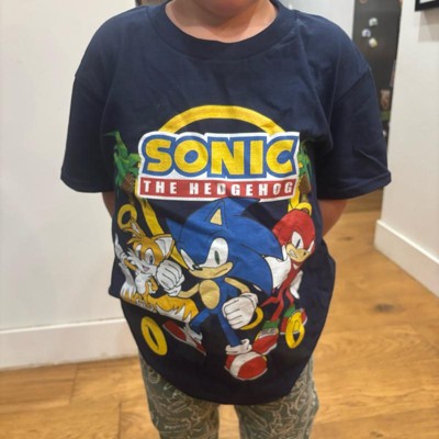This is a cute shirt for any Sonic the Hedgehog lover. The size small fits my large 5 year old well. I like the navy color and the graphic design is super cute. I like that it’s tb vintage Sonic the Hedgehog! The graphic screenprint isn’t the highest quality - it reminds me of the older style screenprint shirts, but it’s still cute and looks good on.
