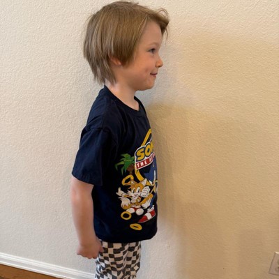 This is a nice sonic shirt for my little sonic lover. He is 5 and I ordered a size small which is his typical size and it was a little oversized but that’s ok because he will be able to grow into it. I love the design on it and the color that goes with anything. He says it’s really comfortable and loves his new shirt!