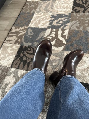 Loved the look of this boot online; however, I should’ve made a slower purchase and read the materials more. It’s a synthetic and I did not expect it to be so shiny. The coloring and fit are very pretty, just very shiny and I don’t expect to wear them much. Should’ve waited to a real leather upper.