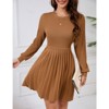 Feature: long sleeve, crewneck, mini length, ribbed knit, slim top, high waisted, pleated skirt, a line swing sweater dress, women's fall winter sweater dress, ribbed dress for women 2024. The pleated A-line design combined with a high-waisted cut accentuates your curves and adds a touch of sophistication to your style. Ideal for every body shape.