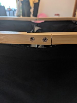 Hello, I put 4 stars because I did not get with the screws that are 4 and very necessary to keep it strong. For the rest, it is spacious, tall and wide so that it fits quite a lot of clothes. Elat The material is strong and the wood ring looks sturdy and good color. I recommend it, I just hope it arrives complete.