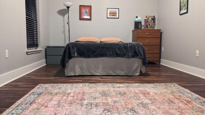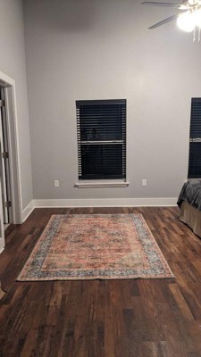[This review was collected as part of a promotion.] I love the design of this rug and how it fits and matches the colors of my room. It's also very durable and doesn't snag from dogs or shoes walking all over it. I also love how easy this rug is to clean. It doesn't show dirt very easily and it's easy to spot clean or wash. On the negative side of things, the rug is a bit thin for my liking, making it feel a bit cheaply made. I just have a thin felt pad under it, but I wish I would have gotten a thicker pad to make it feel more cushiony underfoot. The material itself is also a bit scratchy, which I don't love. Last, it's fairly challenging to dry the rug if you wash it. I don't have a line to hang dry out so I had to awkwardly drape it across my drying rack with the fan on overnight. All in all, this is a good product, but I'd recommend a thick pad underneath it for comfort and minimize the need to machine wash due to the challenges of "line" drying. *I received this product for free in exchange for my honest review.