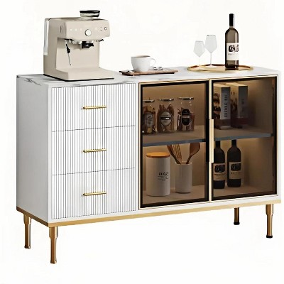 46.4" Fluted Sideboard Buffet Cabinet with Faux Marble Top, Large Storage for Kitchen, Featuring 2 Glass Doors, 3 Drawers, Adjustable Shelves
