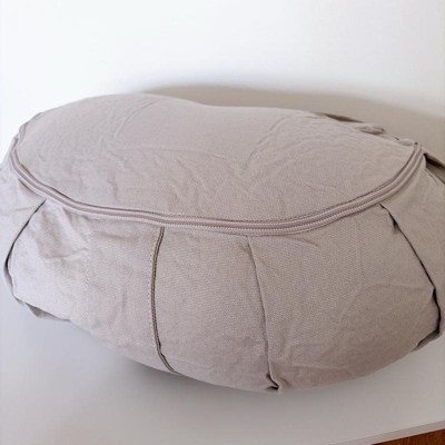[This review was collected as part of a promotion.] I love this yoga floor pillow! The fact that the cover is removable makes it so easy to clean. Just unzip, clean, and zip it back in! It is firm but comfortable!