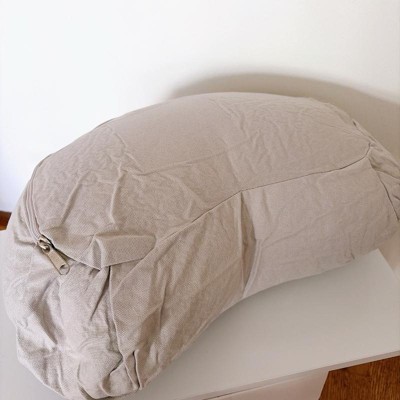 [This review was collected as part of a promotion.] At first I wasn't sure about this pillow. It was really hard. But once I got down on the floor laid on my back, put the pillow under my neck i really helped me get into a deep meditation. The pillow is very firm.It's a great size.I love that the cover is removable to wash.