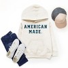 Show your American pride with this 'American Made Varsity' design. Featuring a classic varsity style font in navy blue, this design is perfect for anyone who loves all things USA. Whether you're a sports fan, college student, or just love vintage-inspired looks, this design is sure to make a statement. Wear it to a 4th of July barbecue or just to show off your American spirit. Made with high-quality materials and printed on demand, this design is versatile and perfect for any occasion. Get yours today and rock that American Made Varsity style! Introducing our trendy Youth Hoodie featuring a comfortable and soft design with a graphic print. Made with high quality materials, your child will want to wear it every day.