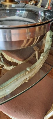 Every chafing ring came scratched or corroded. You can easily see them, you turn it or hide it. I received on Sunday and needed them immediately for a Celebration of life so I couldn't return them. I was very upset to say the least.