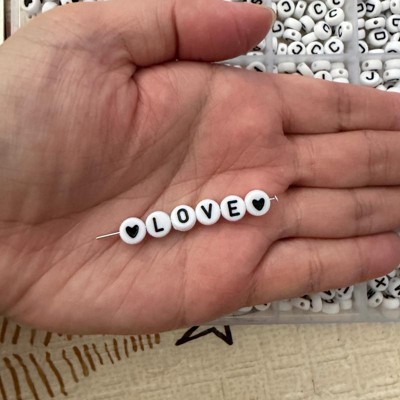 I used this letter bead set to make personalized keychains and bracelets. The beads came in a plastic bead box. They did mix some of the letters together in the box sections: U and V, W and X, and Y and Z. I think the hole size is 1mm, so you’ll want to make sure to choose the appropriate sized string or elastic.