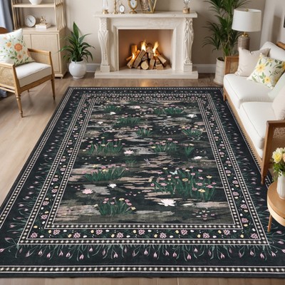 Outdoor Patio Plastic Straw Rug - 9x12ft Outdoor Camping Rug Waterproof Reversible, Area Carpet Patios, Outside Porch Balcony Deck for Camper, Black