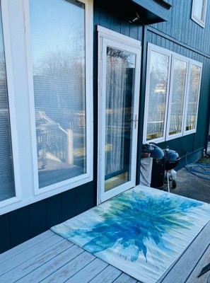 [This review was collected as part of a promotion.] This is the perfect addition to our outdoor space. Our house is a dark teal color, so this rug with sashes of blue and green fits right in. It’ll look even better once we repaint the deck and power wash everything this spring. The rug came packaged well, and seems like it’s really good quality. All in all, very happy with this product.