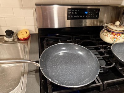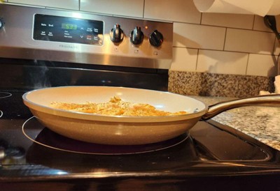 [This review was collected as part of a promotion.] These pans are freaking awesome! We made: scrambled eggs, fried egg sandwiches with ham, grilled cheese, and hamburgers in them the first week we had them. First off they came packaged really well, they were each protected so there were no scratches and they came with directions on how to wash them and take care of them. I have an old electric stove and my favorite pot in the world still cooks unevenly because of that. These pans literally made a perfect grilled cheese all over the bread with no light or soggy areas. After burning the cheese because I was trying to brown rye bread, it literally wiped out with a paper towel. I put everything in the dishwasher, and these pans are no exception. They are as nice today as the day I opened them and we have used the heck out of them. They’re very clean looking and there are no nobby rivets to catch food like cheaper brand fry pans. The handles are very comfortable because they’re not flat sharp metal, it’s contoured to your hand so even a fall and heavy painful still is comfortable. I absolutely recommend these pants, they rival my Gotham pans and I love my Gotham pans.