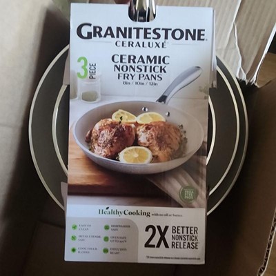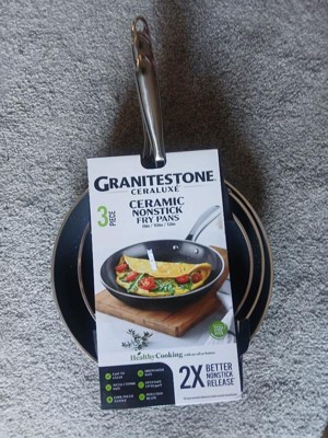 Granitestone Ceraluxe Nonstick Ceramic Fry Pan Set 3 Pc Black Cookware 8” 10” 12” Dishwasher Oven Safe