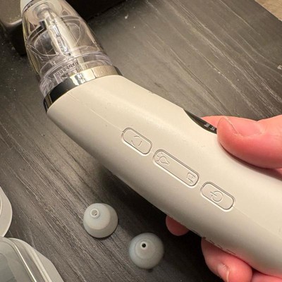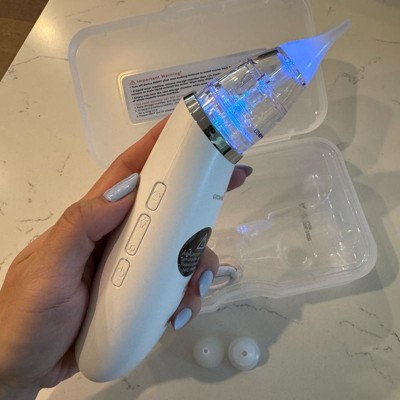 This electric snot sucker is a game changer. We have been using a manual suction for both our kids (toddler and baby) which tends to get stuck. This electric one clears snots so fast. It is easy to use and comes in 3 different sizes for the nostrils. The parts were easy to put in and washed and comes in a case. The design and functions are simple and easy to grip. Also, a bonus that it lights up with different colors and plays melodies to distract the kids. Definitely recommend an electric snot sucker over a manual one.