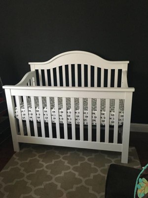 I searched for months before finding this crib. I couldn't find a bright white crib that I wanted anywhere! I hated how most of the white cribs looked girly, or had the screws showing in the front which makes them look cheap. We bought this for our little boy and it is very masculine looking with his bedding, although it can easily be used for a girl as well. Most of the white cribs I found looked very girly. It's very, very sturdy and none of the screws show. I ordered it offline and had it within 5 days. The first one I ordered did come with a little spot that was damaged on it from shipping, but I took it back to my local target and they returned it with no problems. I just ordered another one offline and they sent it to me and luckily the second one wasn't damaged. I highly recommend this crib!!
