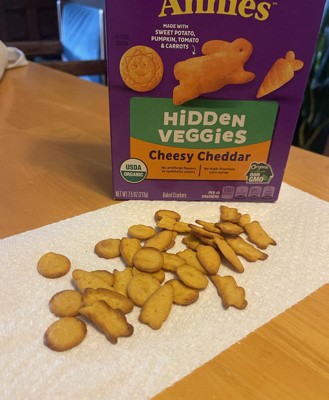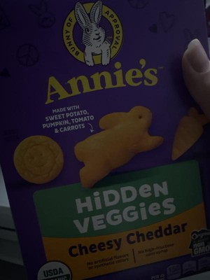 My kids are big fans of Annie's cheddar bunnies. We go thru at least a box a week.....often 2 boxes. We saw this product and I thought "hidden veggies" would be a good way to make a good snack even better. Not to mention....it says hidden.....so I wrongly thought these would be the same as cheddar bunnies. It is not. My kids wont eat these. I tasted them.....and agree. Something is different with this product. The crackers seem stale and arent that flavorful. Just threw a brand new box into the trash. Oh well.......