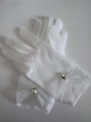 INSPIRE CHIC Women's Pearl Lace Full Finger for Bridge Wedding Party Dating Prom Dress Gloves 1 Pair White1