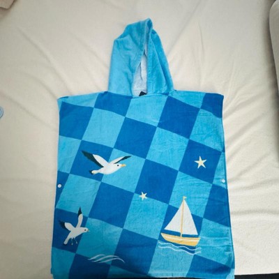 Catalonia 100% Cotton Kid's Boat Hooded Bath Towel for Girls Boys Aged 2-6, Absorbent Toddler Towel Cape, Changing Robe for Pool Beach Bathroom