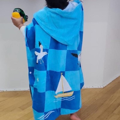This hooded towel is really nice for kids. The size is true to fit and gives good coverage without being too bulky. The cotton material feels soft and absorbs water well after bath .The hood stays on nicely and helps dry hair faster, which is great for little ones. The print and colors look just like the pictures overall, a practical and cute towel for everyday use or beach days.