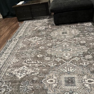 Washable Area Rug - Soft Low Pile Non Slip Distressed Vintage Oriental Carpet for Living Room Bedroom Nursery Office Farmhouse Decor