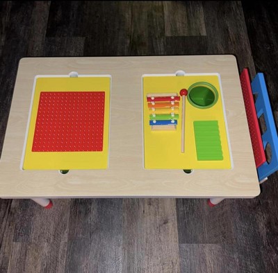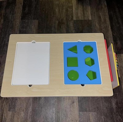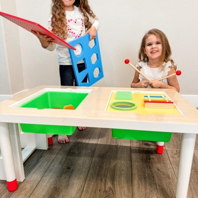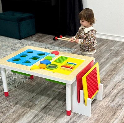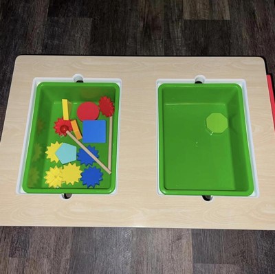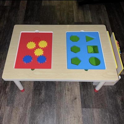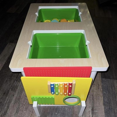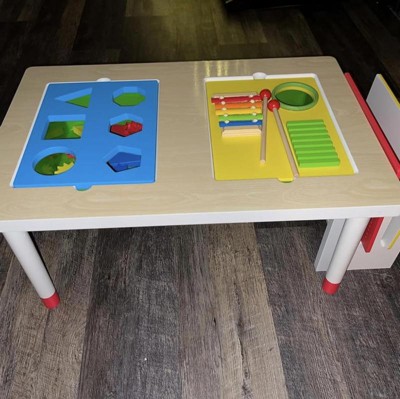 Love that this table is a sensory table and activity table all in one. The bright colors are inviting for kids while the neutral colors of it still makes it look nice in my living room. It seems like it is good quality and was easy to assemble. Very happy with this table.