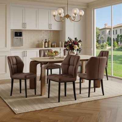 Set of 6 Modern Black Faux Leather Dining Chairs, High Back, Metal Legs for Kitchen or Dining Room,Black