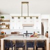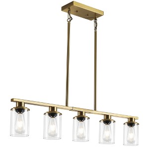 DAKAFUL Modern Linear Pendant Light, 5-Light Industrial Metal Chandelier with Clear Glass Shades for Kitchen Island Dining Room(Gold)