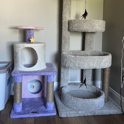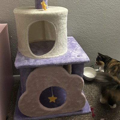 ABSOLUTELY BEAUTIFUL!!!! We bought this for my daughter’s room to match her purple and pink “Barbie” theme room. She calls the cat tree the “Dream Tree” and I think it’s so fitting. It’s extremely beautiful and well made. Simple instructions. And amazing quality. Makes me wish I had another cat just so I could buy another one lol. Our cat is a full size cat and can fit inside the cove. She is a tad on the slim/med size. I don’t think this will be suitable for cats of a larger/ extreme big bodied variety (I’m trying not to offend the cats lol) we love this so much and you definitely will as well.