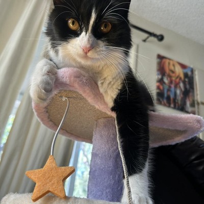 My little fur-ball loves her cat tree! She uses it for play and nap time as well. Arrived early and easy to assemble