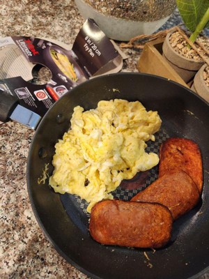 [This review was collected as part of a promotion.] This is the perfect pan for a smaller portion of just about anything. Around here we love our eggs, so that's what we tested the most. My mom used it for spam and eggs. She cracks me up. The pan was easy to keep clean even while cooking. Sturdy, durable little frying pan that is incredibly easy to clean, held up to the nonstick claims, and heated evenly. We'd buy other cookware in this line.