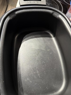I have had this cooker for several years. I’m having trouble with the teflon flaking. I have only used rubber spatulas and wooden spoons. Also the front control panel has cracked. This is the second time this has happened. Williams and Sonoma replaced the first one and now the second one has done the same. I’m still using it because I really like it. I really like I can brown the meat then slow cook. Will not let me attach photos.
