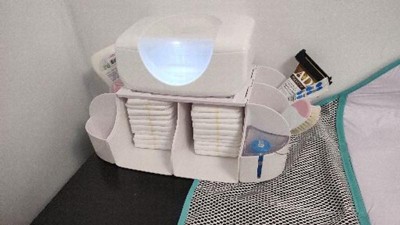 Love this organizer has all the spots for all you need when changing baby on changing table.