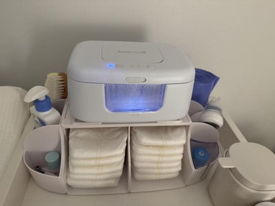This organizer seemed like one of those things that may not be necessary...until you use it! I'm so happy I registered for this organizer. It fits perfectly next to the changing pad on the top of the dresser in the nursery. I love that everything I need (diapers, wipes, cotton balls, ointment, lotion, bulb syringe) is right there during diaper changes. Highly recommend for moms that love organization! Wipe warmer is not included, but IMO a wipe warmer isn't necessary anyway. The wipes pack still fits perfectly on that top tray. One thing to note is that the side trays are great, but tough to clean poo out of in the inside corners from the inevitable poo cannon (IYKYK). Worth it!!