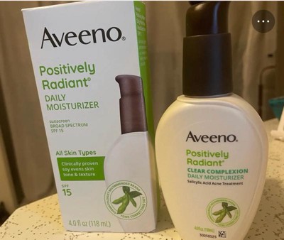 Aveeno Positively Radiant Daily Face Moisturizer - SPF15 - 4oz: Hypoallergenic, Oil-Free, Noncomedogenic, For Normal to Dry Skin