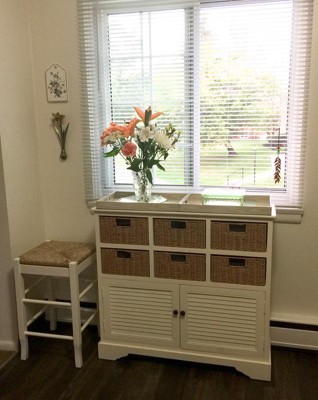 These barstools (we have 3 of them) are the perfect height for our taller countertop. The clean white design and nicely shaped and made rattan seats are the exact compliment for our beachy themed home. Comfortable seating, easy to get on and off, they are perfect.