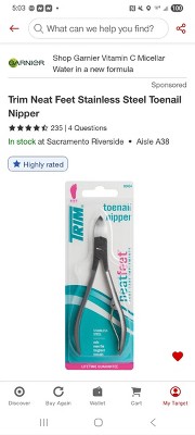 Trim Neat Feet Stainless Steel Toenail Nipper: Nail Care, 4.75 Inch Length, 1.75 Inch Width