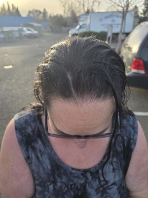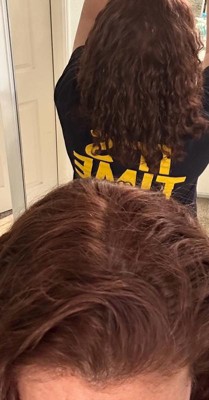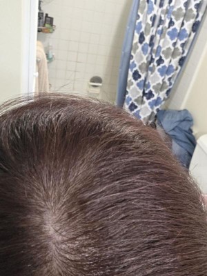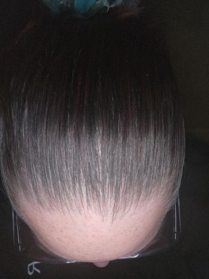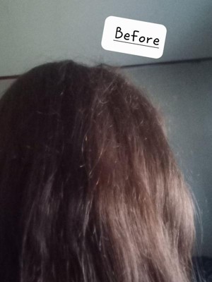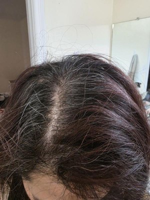[This review was collected as part of a promotion.] I know you cannot tell in the before photo about how much grey hair there is but it was enough to make me self conscious. This black was easy to mix and use evenly throughout my thick and long hair even with me doing a peek-a-boo style. The shampoo and conditioner was enough to wash and condition my hair after the clear rinse. Unfortunately my hair has frizzed out and I cannot get it smooth without product which I dislike using. I wonder if it is the hair color or the different shampoo than I am use to using? My hair is still soft and vibrant here days later. I hope this lasts a while as I love the color.