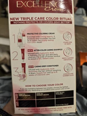 [This review was collected as part of a promotion.] I really liked the Loreal Paris excellence creme triple care color. I got the shade dark brown, and I absolutely loved the end results. It is a natural looking color with excellent gray coverage. The color is long lasting with salon like results at an affordable price. It is very thick, easy to apply, and its non drip. The "triple protection" includes a protective serum, a color creme, and conditioner. It left my hair feeling very healthy and shiny. I would definitely recommend trying it. I love it!