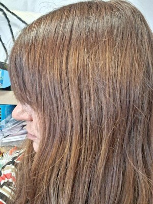 [This review was collected as part of a promotion.] I was honestly a bit disappointed with this hair color. While the application was easy and the scent wasn’t overpowering. The final tone leaned more orange/brassy than I had expected on the positive side, it did a great job covering my gray/white hair and I didn’t notice my hair feeling dry, looking dull, or frizzy afterward. My hair still felt soft and healthy. I was hoping for a more blended, natural, blonde result, and unfortunately, the brassiness just isn’t it. I think the shade simply isn’t the best match for my hair tone.