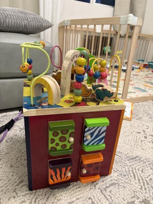 B. toys Wooden Activity Cube - Zany Zoo: Educational Play with Animals, Spinners, Bead Rollercoaster, Functional Doors
