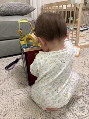 This keeps my little engaged and entertained. Love it, definitely getting more of these. I love all the colors and different activities it has all over.