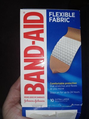 Try Band-Aid Brand Flexible Fabric Adhesive Bandages in assorted sizes to cover & protect minor wounds, cuts, & scrapes of all sizes. Made with Memory Weave fabric for comfort and flexibility, these assorted wound care bandages stretch, bend, & flex as you move for all day comfort. Each first aid bandage features a Quilt-Aid Comfort Pad designed to cushion & protect painful wounds which may help prevent reinjury. Made with a Hurt-Free Pad, these comfortable first-aid bandages won't stick to the wound as they wick away blood & fluids, allowing for gentle, pain-free removal. From the #1 doctor recommended bandage brand, Band-Aid Brand Adhesive Bandages help protect against dirt & germs that may cause infection for up to 24 hours. Plus, wounds covered with a bandage heal faster than uncovered wounds. For proper wound care, treat with an antibiotic ointment such as Neosporin prior to application. Flexible Fabric Adhesive Bandages in assorted sizes are a great addition to any first aid kit.