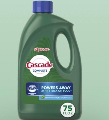 Cascade Complete Dishwashing Gel is a product I rely on because it consistently delivers great results. It is a thick, concentrated gel, so a little truly goes a long way, making the bottle last longer than expected. It does have a pleasant, clean scent when you are pouring it into the dispenser, but it is not overpowering and does not linger on the dishes. It cleans effortlessly, leaving dishes spotless with no residue, streaks, or water marks behind. Cascade is a well-known, trusted name brand that has been around for a long time, and when you compare prices, even though it is a high-quality product, it is usually very comparable to other brands on the market.