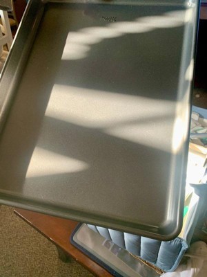 [This review was collected as part of a promotion.] Awesome cookie sheet! Heavy duty and will definitely be taking the place of my old cookie sheets. Bakes cookies perfectly and the non stick works really well as the cookies just slid off. Its a very good size and will be buying more to replace my old ones.